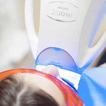 For this procedure must uses the Zoom Advanced Power Chairside Lamp whats to accelerate the bleaching process. The lamp activate the 25% of hydrogen peroxide whitening, as the hydrogen peroxide is broken down, oxygen enters the enamel and dentin to bleach the stained substances, leaving the structure of the tooth unchanged.